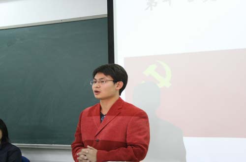 最后,法律系党总支部书记代鸿宾老师对本次研讨会作出总结,并号召各团支部营造浓厚的学习氛围,要将学习十七大的工作深入基层、深入支部,由党员主动带头,团员积极响应,形成全系上下齐动员,学习贯彻十七大精神的热潮。在学习中要找准切入点,找好理论与实际的结合点,不断发掘、创造亮点,以优秀的学习成果向学院汇报,向同学们展示。