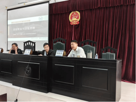 5月22日15时,法律系“法律实务专家进校园”第三期活动在8教模拟法庭,成功举办。本期活动以“法官职业与法官思维”为主题,特邀天津市东丽区人民法院刑事审判庭副庭长阎喆作为嘉宾走进校园,分享自己的法学思维与法官工作经验,为法学系学生带来了一场别开生面的法律实务讲座。本次活动由法律系常务副主任邢晓晖主持,刘国平、林铁军老师作为与谈人,一百五十余名法律系学生参加。