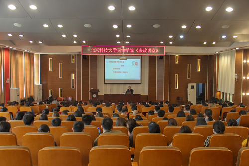 5月14日上午,北京科技大学纪委办、巡察办与我院联合开展党史学习教育。活动开展前,北京科技大学纪委副书记兼纪委办、巡察办主任吴豪伟在学院理工馆学术报告厅进行《廉政讲堂》讲座。北科大纪委办、巡察办副主任牛珩,学院院长王斌,党委书记丁煦生,副书记、副院长叶振楠,副书记牛犁,财务总监王俊敏,党委委员张建华、何国钧、郭雅娟出席会议。学院中层干部、师生党员代表参加本次活动。