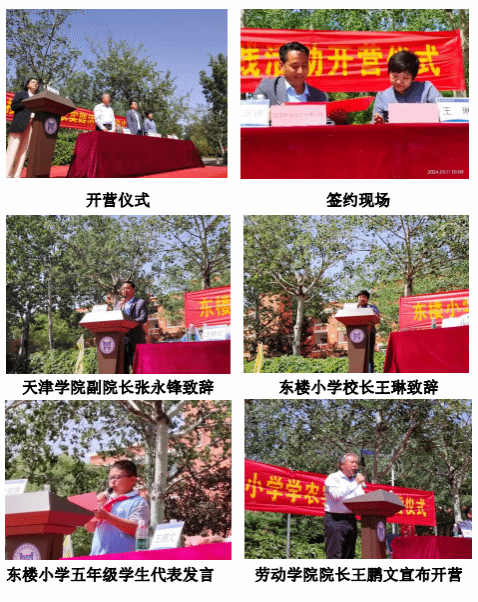 2024年5月11日上午,天津市河西区东楼小学五年级学生学农实践活动在我院鹿鸣园广场正式开营。在学农实践活动开营仪式上,东楼小学与我院签订了“校内外劳动教育共同体协议”,北京科技大学天津学院副院长张永锋、东楼小学校长王琳、劳动学院院长王鹏文及劳动基地副主任杨丽出席了该活动,张永锋副院长与王琳校长在东楼小学五年级330余名师生见证下完成协议签约。开营仪式结束后,300余名祖国的小花朵在我院大学生志愿者的带领下踏上了农事劳动实践的探秘之旅。