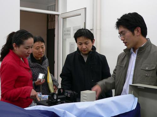 交流会后,双方兴趣昂然地到贝尔实验楼参观了物理实验室。