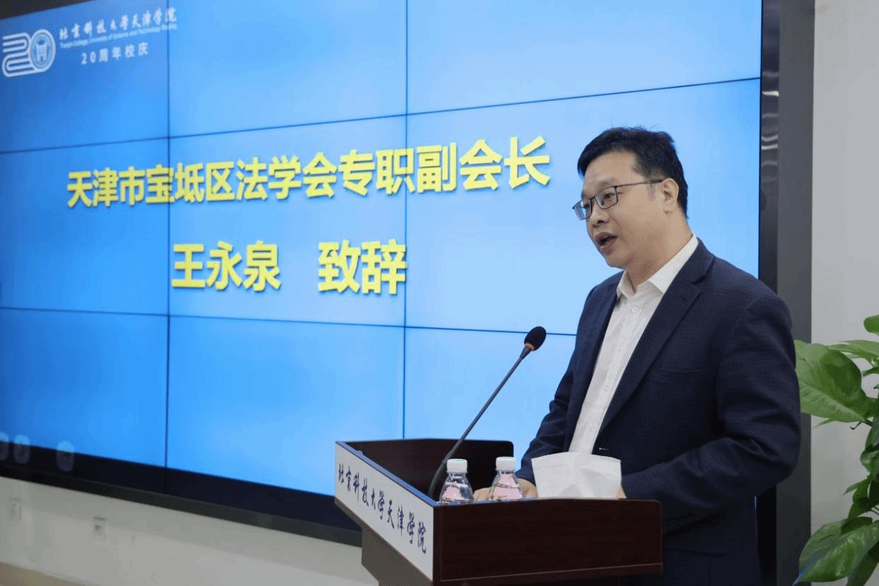 天津市宝坻区法学会专职副会长王永泉发表开幕致辞。他表示,在数字化与智能化发展的时代,知识产权法治实践面临变革,当前知识产权本科教育存在与实践需求脱节等问题。此次研讨会是推动法学教育改革的关键举措,法学会将整合资源,助力培养契合时代需求的知识产权专业人才。