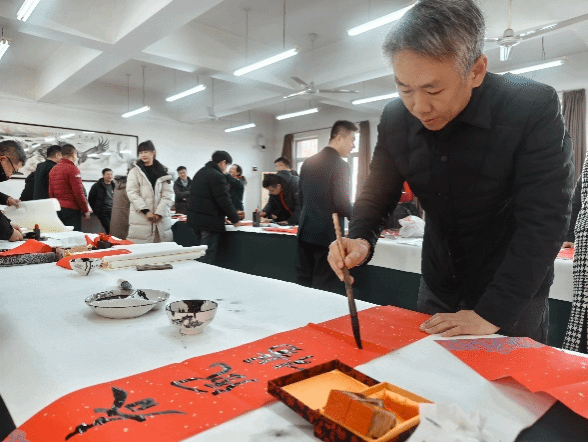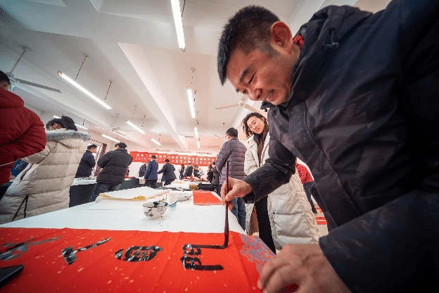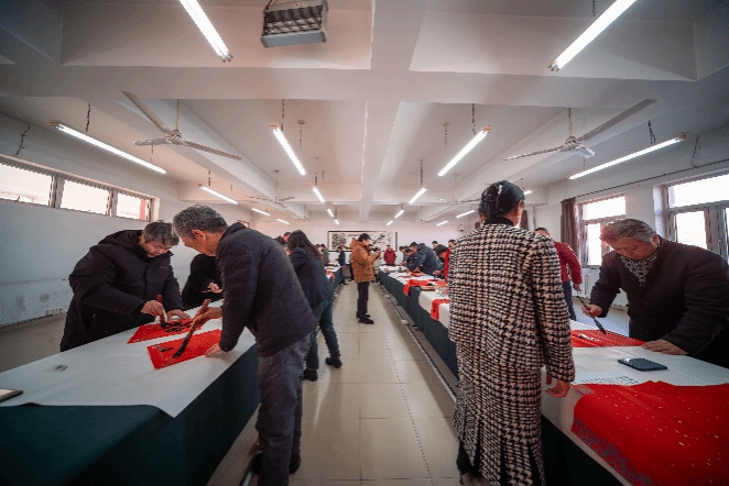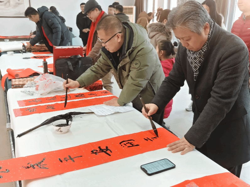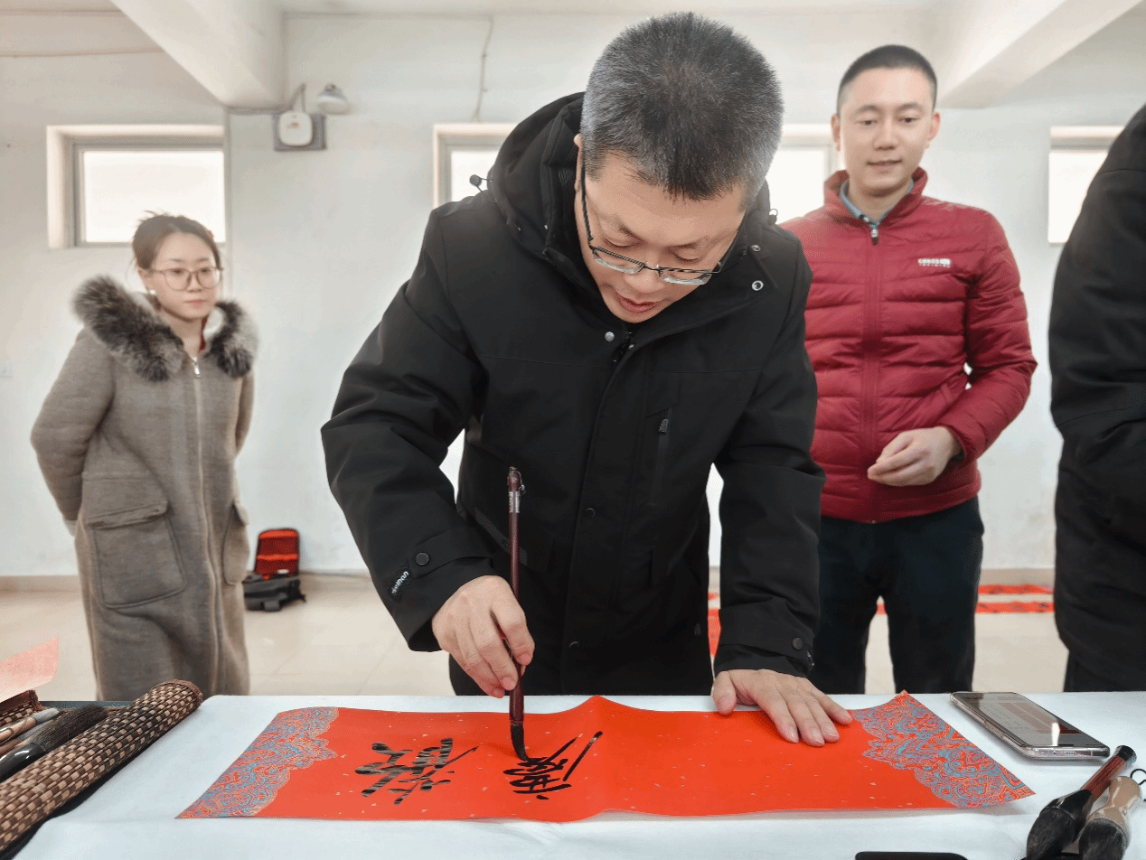 揭牌仪式结束后,来自天津书协、篆刻委员会以及宝坻区书协、篆刻家协会天津市书法家协会的艺术家们现场挥毫泼墨,为师生们书写春联和福字。吸引了学生以及在校教职工前来学习和体验。一幅幅寓意吉祥的春联和福字,不仅传递了新年的祝福,也展现了书法艺术的魅力。师生们纷纷围观,赞叹不已,并积极参与其中,体验书法的乐趣。