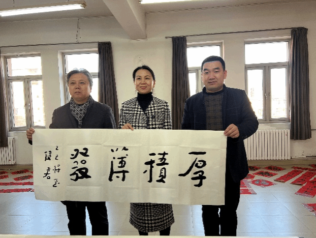 宝坻区文联专职副主席白秀霞女士在发言中说道,天津市文联艺术家实践基地在北京科技大学天津学院挂牌,艺术家们深入基层送服务,为学院送来新春的祝福,这是高校与艺术的紧密结合。市书法家协会把这块牌子挂在宝坻,挂在天津学院,是对宝坻这方文艺沃土的高度重视和充分认可,是对宝坻文艺事业发展的大力支持与深切关怀。