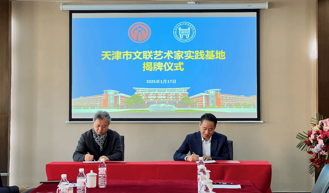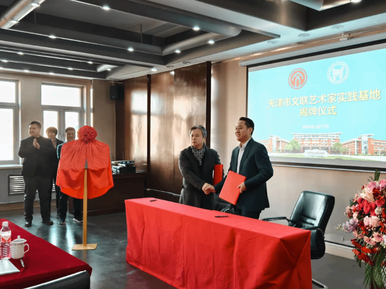 在热烈的掌声中,杨健君与张永锋代表双方签署了共建协议,标志着天津市文联艺术家实践基地正式落户北京科技大学天津学院。随着音乐的响起,杨健君、张永锋、白秀霞、王俊敏、郭雅娟、胡宝嘉、薛卫林、李绍晨、马春立等领导共同上台,为艺术实践基地揭牌。现场掌声雷动,气氛达到了高潮。