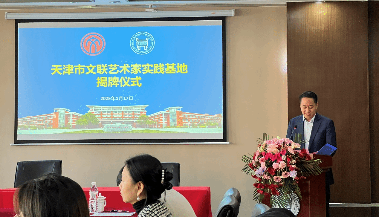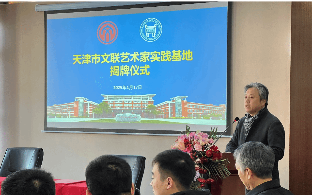 张永锋副院长代表北京科技大学天津学院对各位领导、嘉宾的到来表示热烈的欢迎;对文联、书协长期以来对学院工作的大力支持表示衷心的感谢;对此次双方合作共建以及市文联艺术家实践基地挂牌表示热烈的祝贺。天津市文联艺术家实践基地在天津学院落户,将为学院文化艺术教育事业注入新的活力,也为广大艺术家、学院师生提供了一个展示才华、交流技艺的广阔平台。天津学院将以此次合作共建为契机,进一步拓展与文联、书协的深度合作,努力讲好学院故事、讲好地方故事,实现区域文化与校园文化的融汇共进。