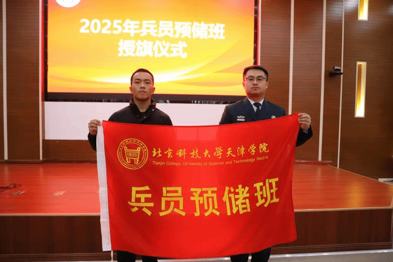 宝坻区人武部王宇干事为我院2025年兵员预储班授旗。