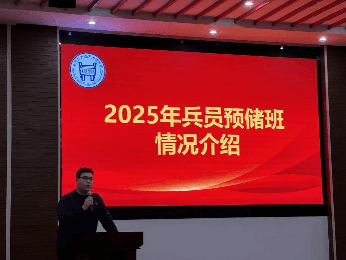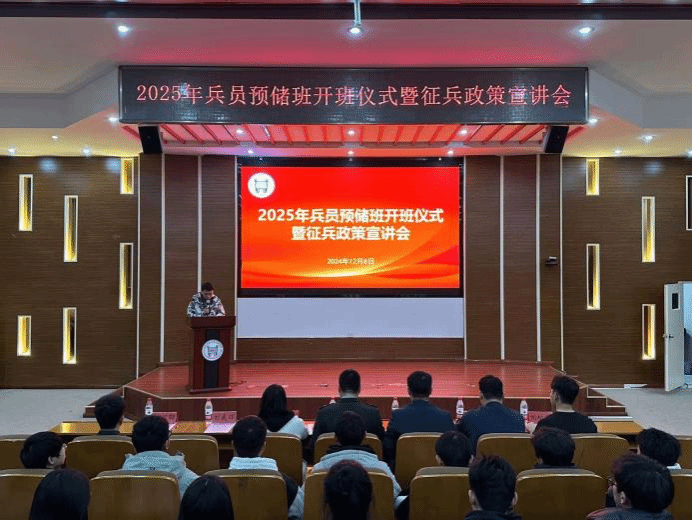为加强兵员预征预储工作,积极响应军地联动,激发广大青年参军报国的热情,精准宣传征兵政策,12月8日下午,我院成功召开2025年兵员预储班开班仪式暨春季征兵政策宣讲会,宝坻区人武部徐宝辉参谋、王宇干事、退役军人事务局刘叔韬同志、学院武装部李雲啸老师参加,宣讲会由武装部刘武辉老师主持,各院系200余名师生参会。