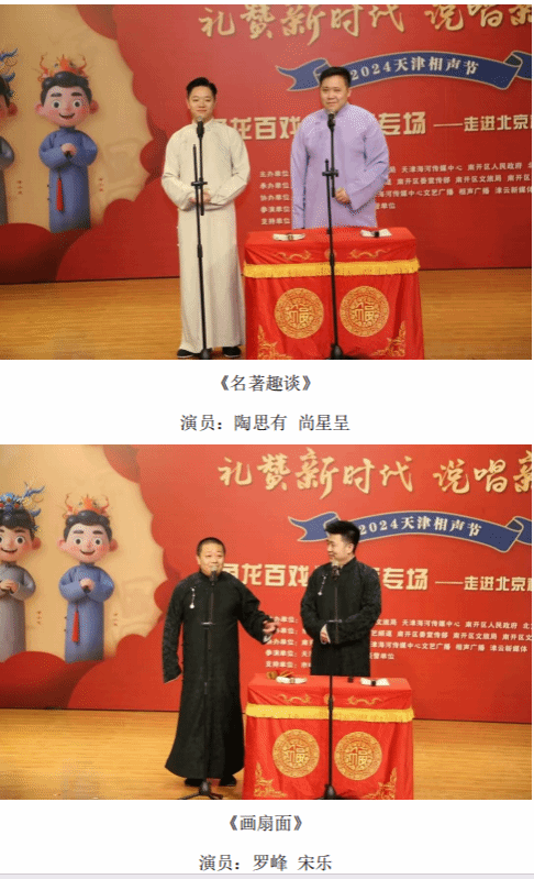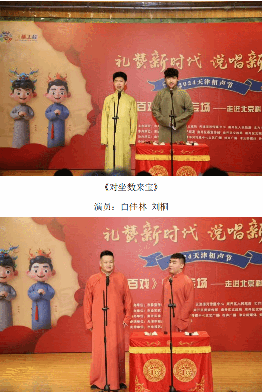 12月5日晚,“礼赞新时代 说唱新生活——2024天津相声节”《鱼龙百戏》相声专场走进北京科技大学天津学院。此次活动由市委宣传部、市文联、市文化和旅游局、天津海河传媒中心、南开区人民政府、北方演艺集团主办,市曲艺家协会、天津广播电视台文艺频道、南开区委宣传部、区文化和旅游局、区文联共同承办。