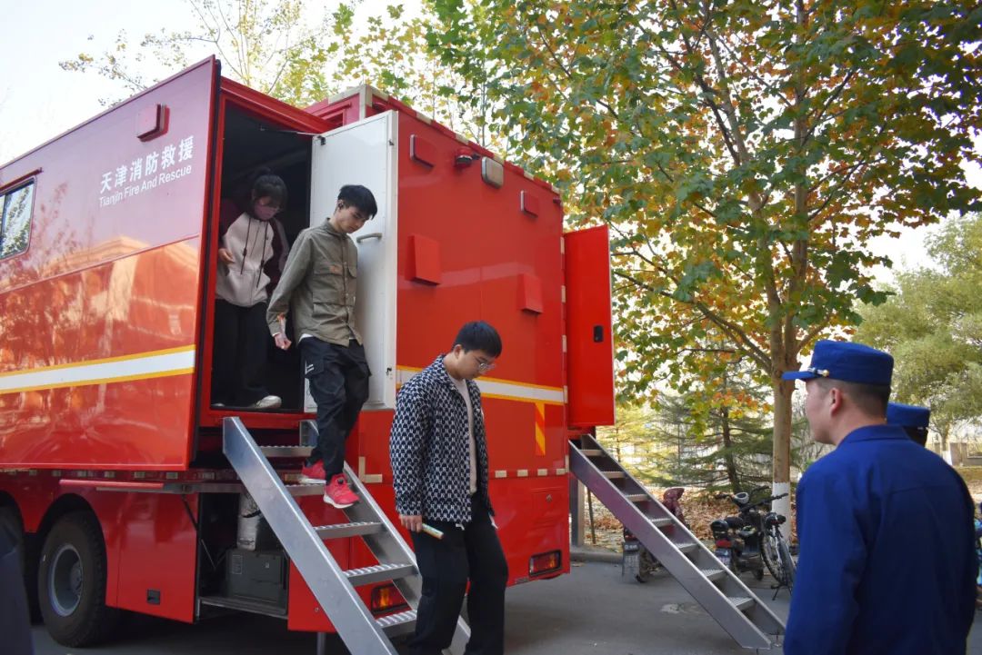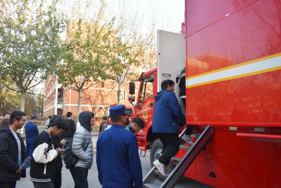 本次活动设置线下宣讲、宣传品发放和消防救援车辆器材展示两个展区。一方面通过制作精美的宣传页,将校园生活中消防、反诈的安全常识,应急求助的联络方式向同学们普及;另一方面通过新城消防站指战员的专业展示,吸引广大师生走进消防,了解安全,学习安全知识和自护自救技能。