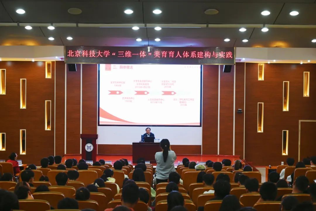 10月9日下午,北京科技大学人文素质教育中心副主任兼文法学院副院长、北京市教学名师韩学周应邀在理工馆学术报告厅作主题为“三维一体,美育育人体系建构与实践”讲座。他梳理了近年来学校美育相关政策,明确了高校美育工作的重点和发展方向,重点介绍了美育研究分会工作的特色成果以及北京科技大学人文素质教育中心“四位一体,一体两翼”的课程体系建设经验,拓宽了学校美育实践新渠道,推进形成“一校多品”美育发展新局面。