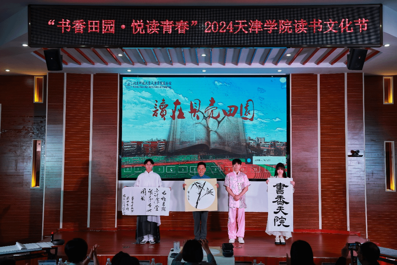 2024年4月23日晚7:00,图书馆在理工馆学术报告厅成功举办“书香田园·悦读青春”主题读书文化节晚会。宝坻区文化和旅游局局长吴庆娟、副局长张英,宝坻区图书馆馆长孙凤婷,文化馆馆长倪芳芳,北京科技大学天津学院院长丁煦生,学院各部门负责人、图书馆全体馆员以及来自各院系师生300余人参加了晚会。