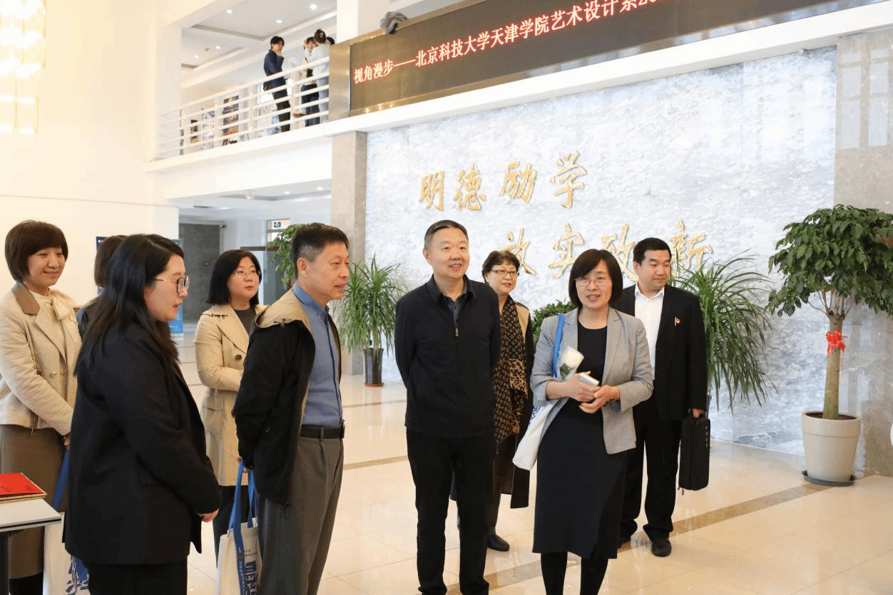 北京科技大学天津学院院长丁煦生、党委书记叶振楠、副院长张永锋、副院长兼财务总监王俊敏、党委副书记栗时锋、党委副书记郭雅娟,艺术学院院长胡宝嘉、艺术学院党总支书记张添善、艺术设计系全体师生参加开幕式。开幕式由艺术设计系常务副主任李文红主持。