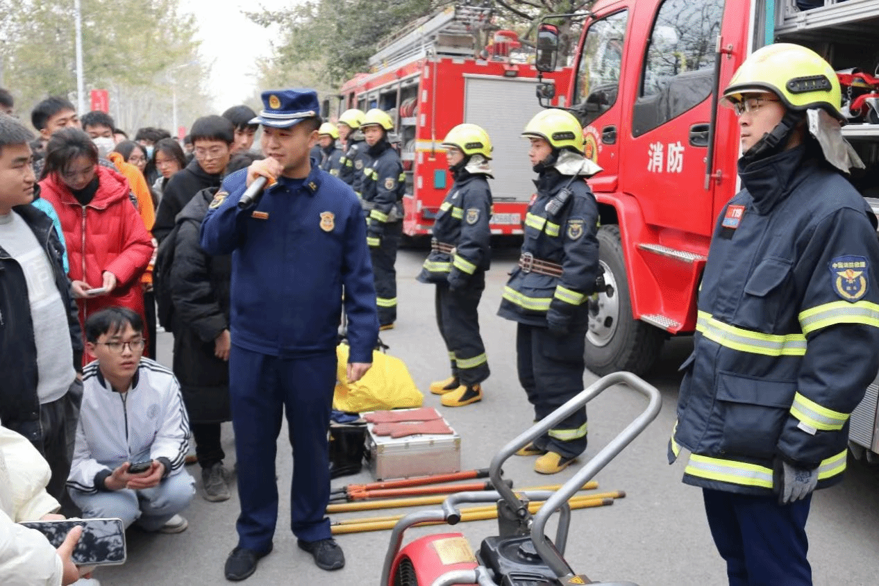 11月15日,学院联合新城消防救援站和派出所,在学院小广场前和理工馆消防通道,分别开展反诈签名和消防应急救援装备展示体验活动。一方面,通过发放消防、反诈安全宣传单,组织同学们参与校园防火和防范网络电信诈骗签名活动,深化普及防范反诈和校园生活消防安全常识;另一方面,让同学们深入体验消防救援装备和公安防暴装备,从“听我讲”到“我试穿”、“我试用”,转变安全宣传思路和宣传方式,增添宣传活动趣味性,激发广大学生群体参与安全宣传,学习安全知识的积极性和主动性。