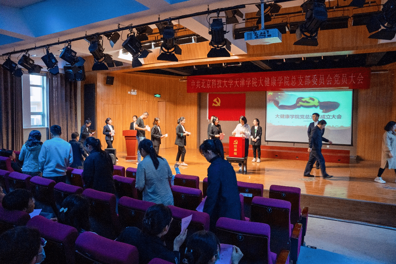 随后,大会审议通过了《北京科技大学天津学院大健康学院党总支部党员大会选举办法》、监票人及计票人、委员会候选人名单。在监票人郑泽泽同志的主持下,按照选举程序,与会正式党员以无记名投票方式,差额选举产生王刚、王堃、邢冬婕、李贝贝、赵慧敏5位同志为第一届大健康学院总支部委员会委员。