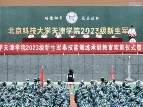 9月11日下午,北京科技大学天津学院举行2023级新生军事技能训练承训教官欢迎仪式暨军训动员会,北京科技大学天津学院军训团团长、中国人民解放军某部现役军官陈教官,学院院长丁煦生,党委书记叶振楠,副院长张永锋,党委副书记赵志南,党委副书记栗时锋,学术委员会主席宋存义,全体军训带队教师出席了仪式,4400余名2023级参训学生参加了仪式。
