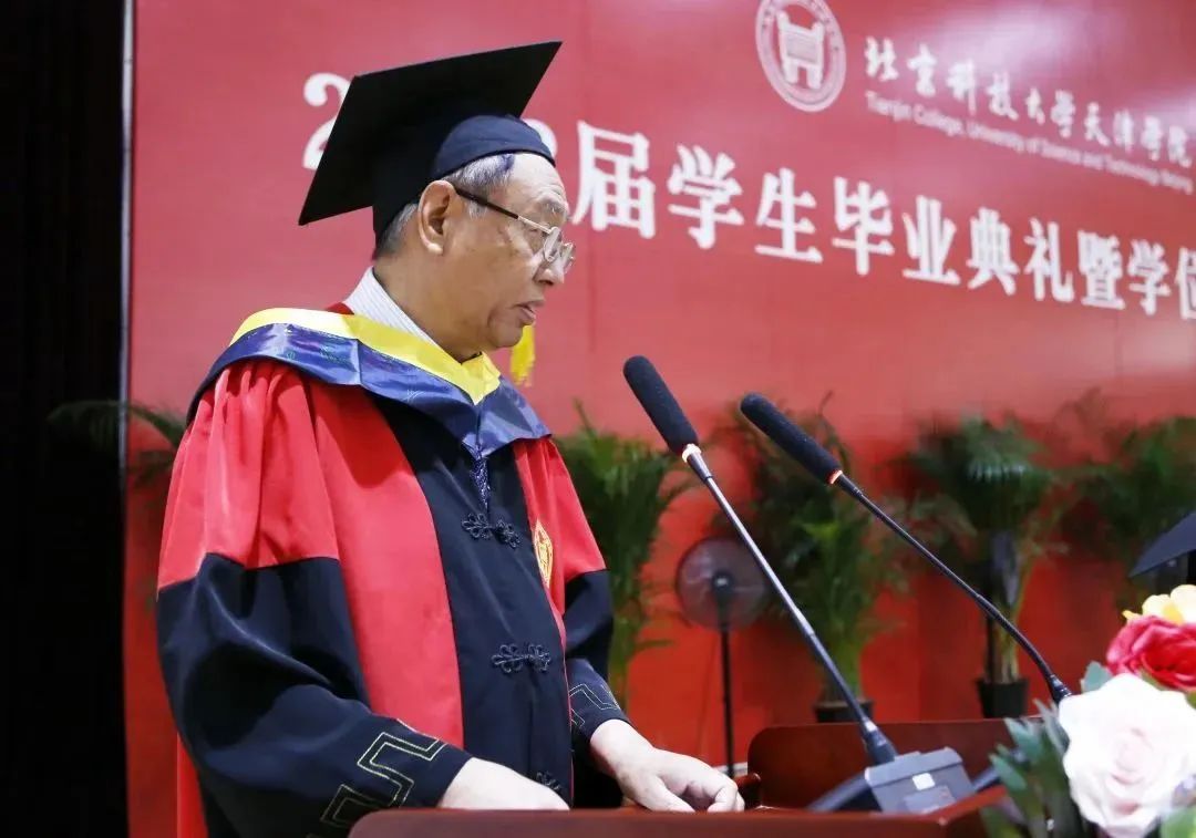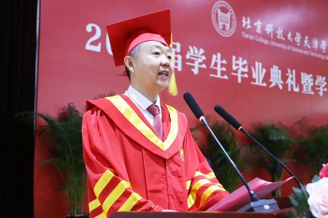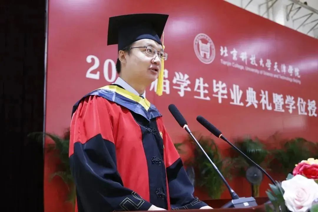 智能制造学院副院长班岚作为教师代表发言,向圆满毕业、再启新程的同学们,表达了最美好的祝福,希望同学们毕业后能够砥砺奋斗、志存高远,在艰苦奋斗中成长成材,百炼成钢,承载北京科技大学天津学院的希望,让青春风采在未来之路闪闪发光。
