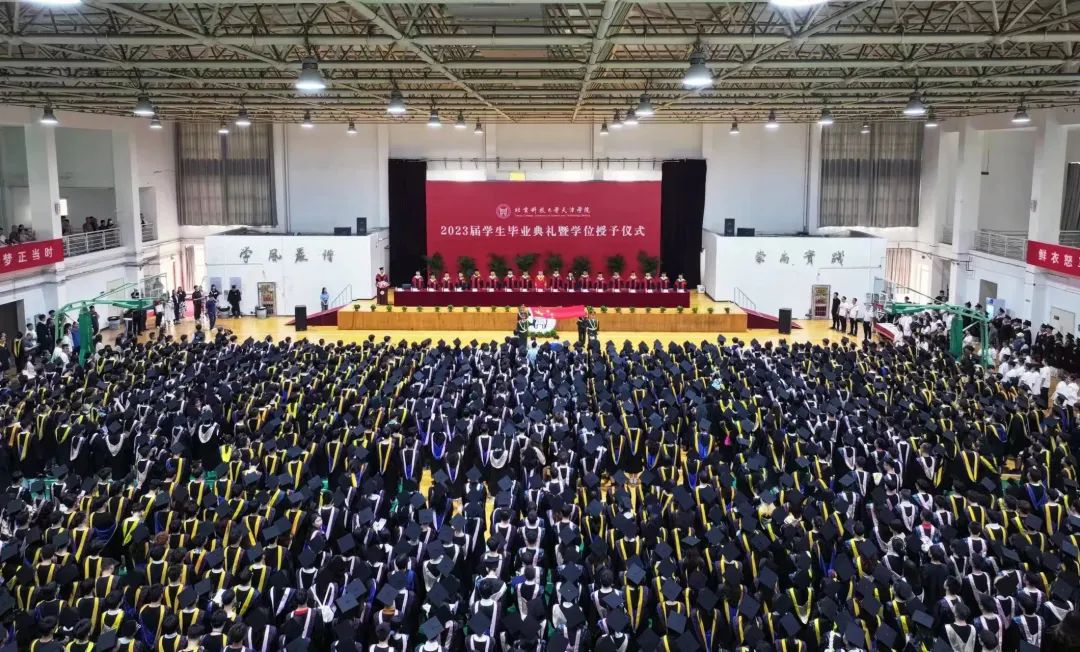 6月20日上午7时,北京科技大学天津学院2023届学生毕业典礼暨学位授予仪式在体育馆顺利举行。