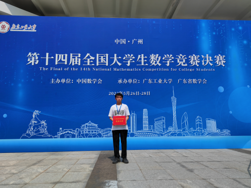 由中国数学会主办的第十四届全国大学生数学竞赛决赛于2023年5月27日在广东工业大学举行。本次竞赛全国共有32个赛区1024所高校231769人报名参加初赛,经过选拔,共有444人进入非数学专业组决赛。我院2020级通信工程专业的邓远清同学获得北京赛区初赛一等奖,成功晋级第十四届全国大学生数学竞赛决赛,并最终获得全国总决赛非数学类的三等奖,这是我院学生在该项赛事上获奖的新突破。
