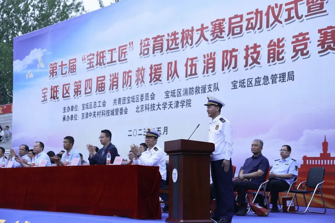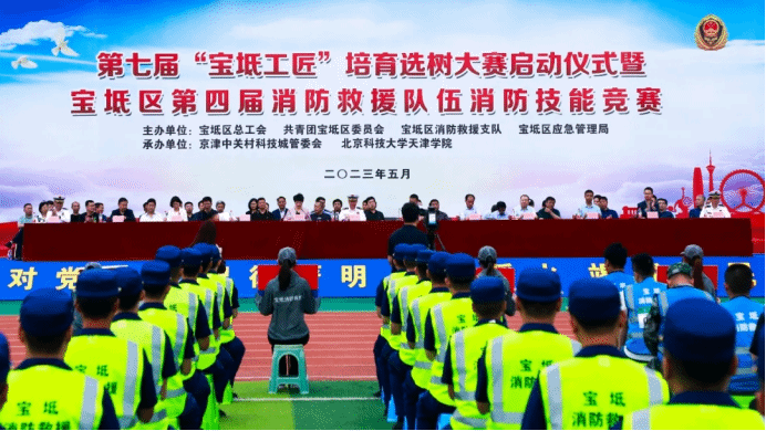 2023年5月17日,宝坻区第四届消防救援队伍消防技能竞赛在我院顺利举行。天津市消防救援总队党委委员、政治部主任周秀,市总工会党组成员、副主席王克文,区人大常委会副主任、区总工会党组书记、主席刘玉玲,副区长、公安宝坻分局局长李学彤,市总工会基层工作部部长张家翔,区总工会常务副主席张亚彬,北京科技大学天津学院院长丁煦生、党委书记叶振楠、副院长张永锋出席启动仪式。宝坻区区委区政府、各委办局、镇街、管委会和学院相关领导出席活动。
