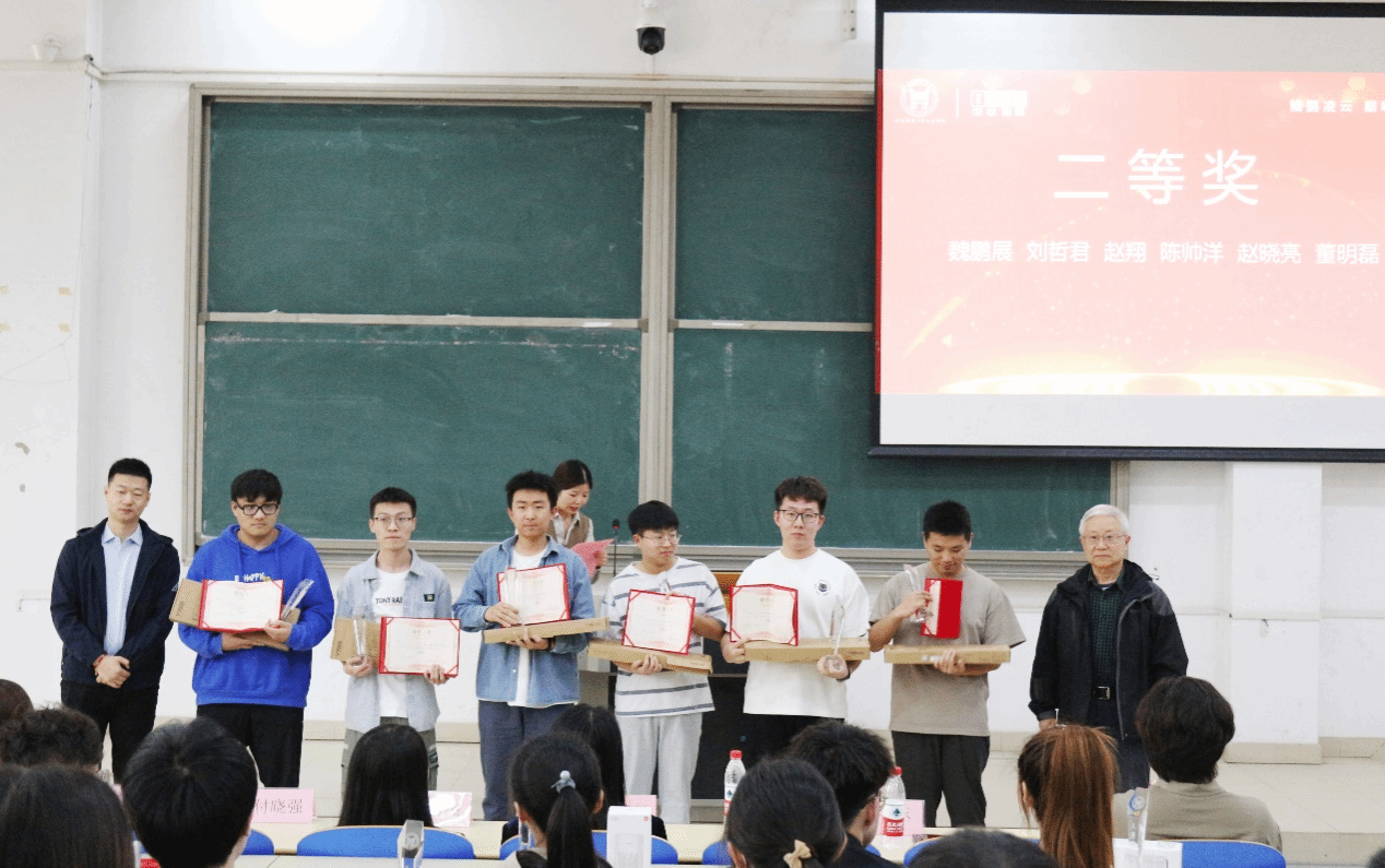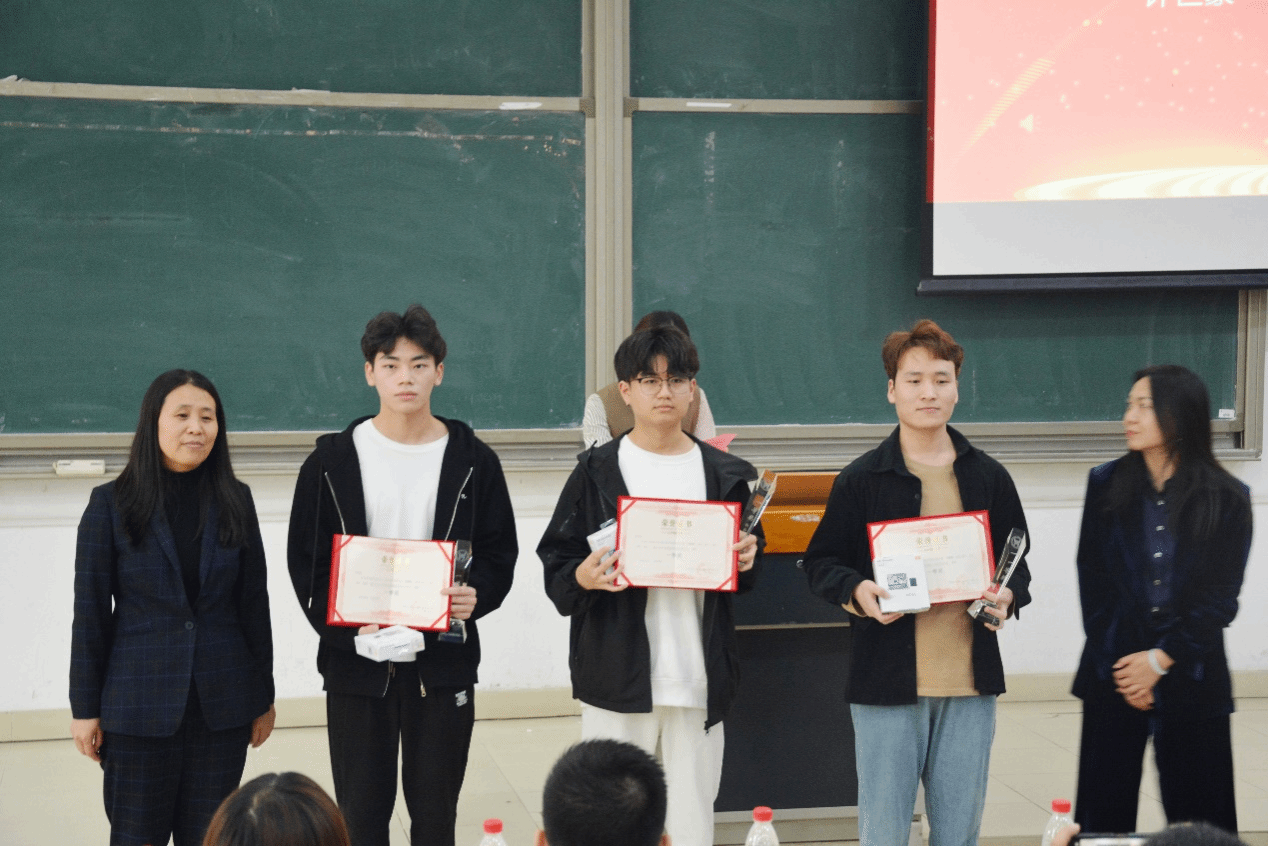 再次颁布的是此次大赛二等奖获得者,由信息工程学院院长许学东、中软国际天津公司技术总监付晓强为获奖者颁奖;