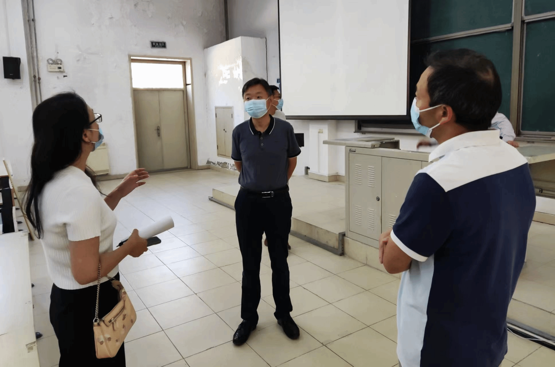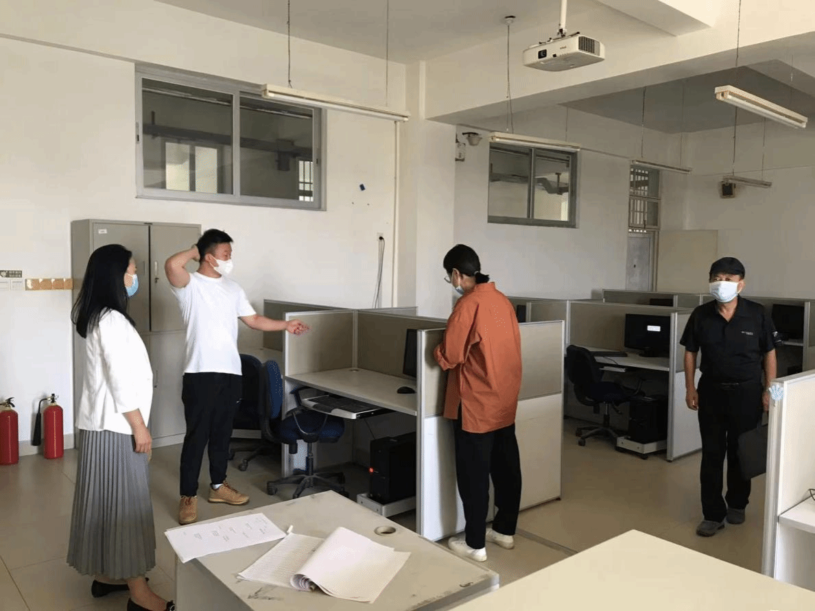 副院长兼财务总监王俊敏检查3教设备