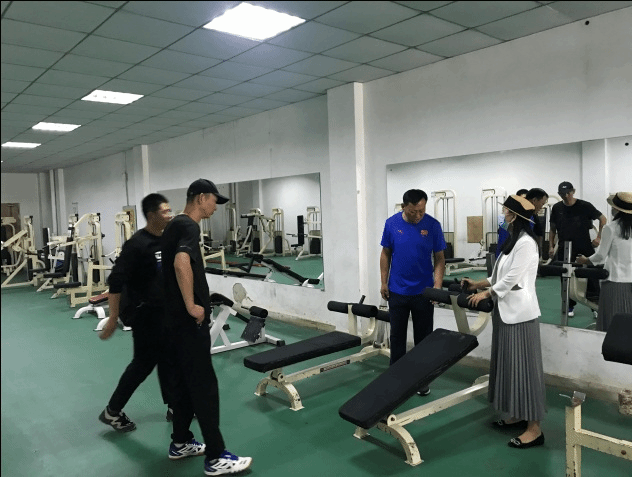 副院长兼财务总监王俊敏检查体育馆运动器械