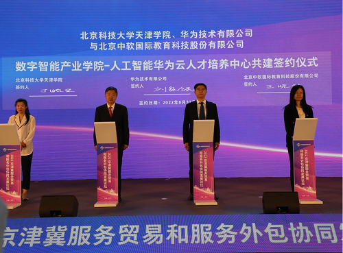 8月31日,京津冀服务贸易和服务外包协同发展论坛在北京举行。学院院长、党委书记丁煦生受邀参加此次论坛,并与华为技术有限公司和北京中软国际教育科技股份有限公司签定合作协议,共建数字智能产业学院—人工智能华为云人才培养中心,联合培养新一代信息技术产业及数字经济产业的紧缺人才。