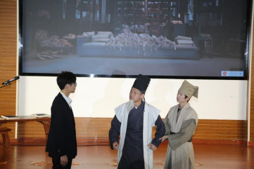 戏剧社精心改编的《典籍里的中国》更是一幅流动的文化长卷。演员们以精湛的表演推开千年时空之门,让《孙子兵法》的谋略智慧、《尚书》的治国之道、《徐霞客游记》的山水情怀在舞台上鲜活再现,让沉睡的文字唤醒为跳动的文化血脉,泛黄的典籍化作照亮天津学院的精神灯塔。