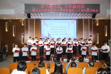晚会尾声,图书馆全体馆员饱含深情的朗诵《献礼北京科技大学天津学院建院二十周年》,为我校建院二十周年献上最诚挚的祝福,愿学院在传承与发展中迈向新的辉煌。