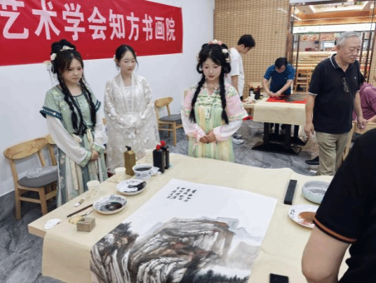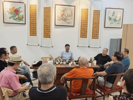 当墨香邂逅茶香,当艺术对话校园,一场别开生面的高雅艺术盛宴在北京科技大学天津学院传统文化体验馆温情上演。为深入推进新时代美育工作,传承中华优秀传统文化,2025年7月1日下午2:00天津市艺术学会知方书画院的艺术家们莅临我院,以品茶论道、挥毫泼墨的形式,为师生们带来了一场浸润心灵的文化体验,同时提升学生的艺术素养。