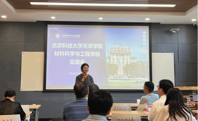 考察交流会在北京科技大学众山精密报告厅(主楼323)举行,北京科技大学材料科学与工程学院副院长、北京科技大学天津学院材料与环境学院常务副院长曹文斌担任主持人。北京科技大学材料科学与工程学院党委书记张秋曼出席。