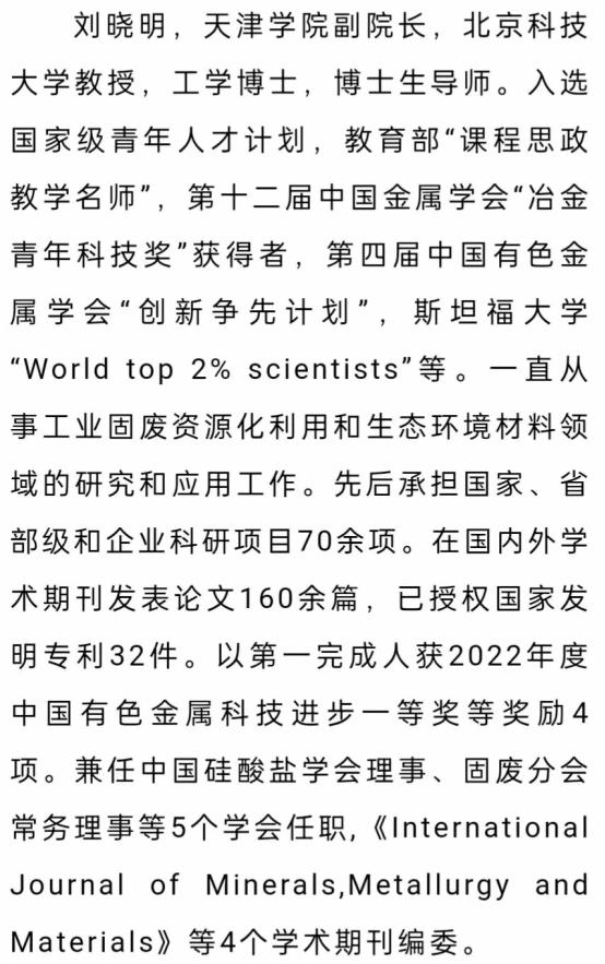 近日,2025年冶金科学技术奖授奖公告正式发布,天津学院副院长、北京科技大学刘晓明教授团队的科研成果《电解锰渣中氨氮循环及多固废全组分协同利用研究与应用》喜获一等奖!