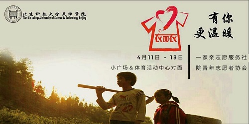 2017年4月11日至13日,北京科技大学天津学院青年志愿者协会与宝坻区“一家亲”志愿服务社联合开展了为期三天以“衣加衣,我们一直在行动”为主题的旧衣捐赠再利用环保公益活动。本次活动共募集爱心物资120余袋,包括...