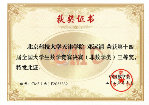 由中国数学会主办的第十四届全国大学生数学竞赛决赛于2023年5月27日在广东工业大学举行。本次竞赛全国共有32个赛区1024所高校231769人报名参加初赛,经过选拔,共有444人进入非数学专业组决赛。我院2020级通信工程专...