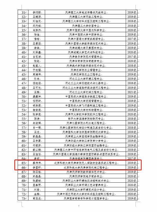 近日,根据市奖学金评审委员会评审,最终确定了2021年天津市大学生创新创业奖学金获奖学生名单。我院2019级无人机系王大泽,2018级智能制造学院金光获创新优秀奖;2019级无人机系蔡伟伟,2019级智能制造学院李国昕获...