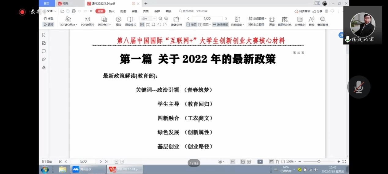 5月18日下午,“我敢闯,我会创”第八届中国国际“互联网+”大学生创新创业大赛北京科技大学天津学院校内选拔赛启动会成功举办。学院党委副书记叶振楠出席本次活动,北京云网联科技有限公司联合创始人、教育部中国国...