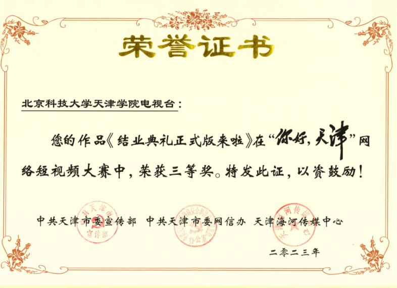 近期,由天津市委宣传部、天津市委网信办、天津海河传媒中心联合举办的“你好,天津”网络短视频大赛获奖结果揭晓。我院电视台《在夏天遇见的》、《小贝壳们在全国各地为天津加油》、《结业典礼正版来啦》3部作品经过...