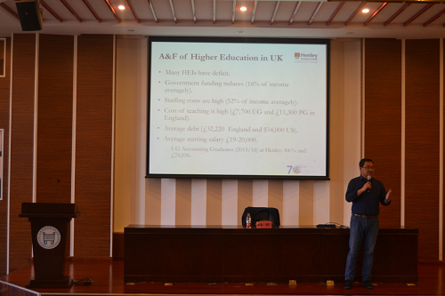 为了让同学们进一步掌握美国银行市场发展的现状,2018年10月24日经济学院特别邀请现任国际中小企业杂志主编韩亮教授开展以“美国行市场发展与现状”为主题的学术讲座。 讲座过程中韩亮教授最先讲述其作为一名...
