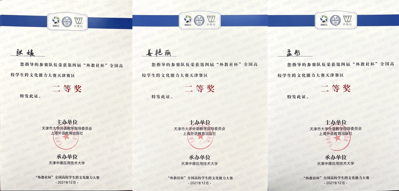 近日,在天津市外语教学指导委员会和上海外语教育出版社主办的第四届“外教社杯”全国高校学生跨文化能力大赛天津赛区比赛中,外国语学院三名同学取得佳绩,英语专业刘家豪同学、刘珩同学和日语专业李少媚同学荣获二...