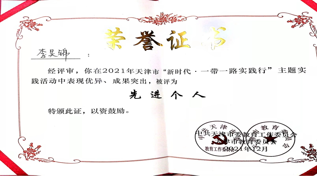 近日,我校在市教育两委组织开展的“新时代·实践行”系列实践活动中喜获佳绩,由外国语学院组建的“新时代外语构建桥梁·外音博长”实践团在一带一路项目中荣获2021年天津市“新时代•一带一路实践行”先进集体称号;...