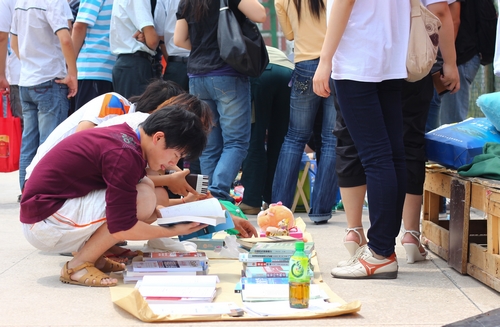 6月11日至12日,第二届毕业生“跳蚤市场”在我院轮滑场隆重开张。 上午11点,轮滑场上就已经陆陆续续摆满了各种各样的摊位。2010届毕业生统一穿着白色的毕业生文化衫,向赶来“淘宝”的学弟学妹...
