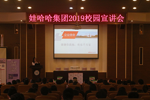 在宣讲会现场,娃哈哈集团宣讲人宣传了集团发展战略、文化理念、人才战略、岗位信息、招聘需求等内容,并现场回答了到场同学提出的各类问题。宣讲会结束后,娃哈哈集团招聘官对有应聘意向的同学进行了现场面试。