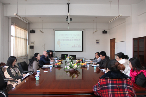12月8日上午,英国知山大学商学院院长约翰•沃恩(John Vaughan)、中国联络官员周静萍,托起盛世教育公司国际部主任赵慧琴等一行四人来到我院进行参观访问。在行政楼会议室,双方就进一步确立国际合作项目进行了协商讨论。