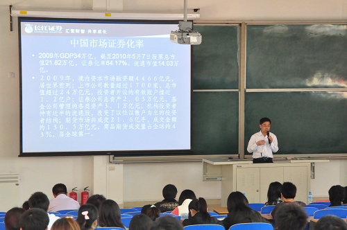 本次讲座一共分为两个环节,第一个环节由长江证券资深分析师——陈强安先生为大家作题为“中国资本市场发展现状”的讲座,第二个环节为校园招聘宣讲会,为我院06、07级的学生们提供就业和实习岗位。