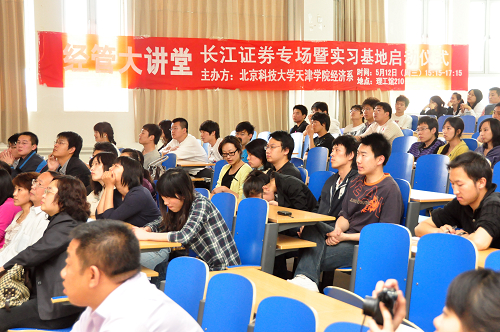 2010年5月12日下午,由经济系和管理系共同主办的本学期 “经管大讲堂”第二期“长江证券专场暨实习基地启动仪式”在新图书馆210举行。经济系主任王宾容、管理系主任梁桂川、经济系党总支副书记李静雯、管理系党总支副书记张琦以及经济系、管理系教师、辅导员出席讲座。