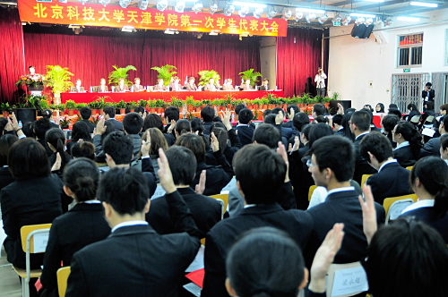 最后,院学生会秘书长胡洪强致闭幕词,要求当选委员要更好地履行自己的职责,为争取更大的成绩而奋斗。至此,北京科技大学天津学院第一次学生代表大会胜利闭幕。
