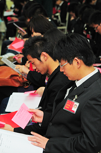 学生代表在认真填写选票