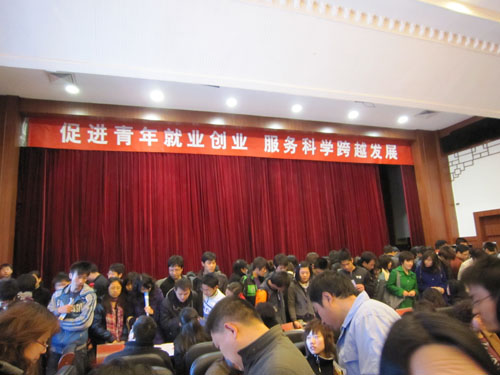 4月2日上午,我院就业指导中心统一组织2010届毕业生参加了在宝坻宾馆大会议厅举办的“青年创业项目推介暨就业招聘活动”。