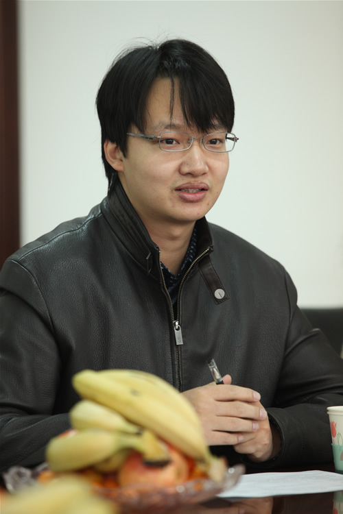 我院团委书记叶振楠向来宾介绍我院团学工作情况